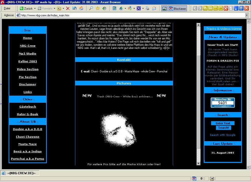 Hier ein paar Screenshots der alten Homepage, damit man diese nicht ganz vergisst...hat ja schliesslich auch kein schlechtes Design gehabt, oder?!